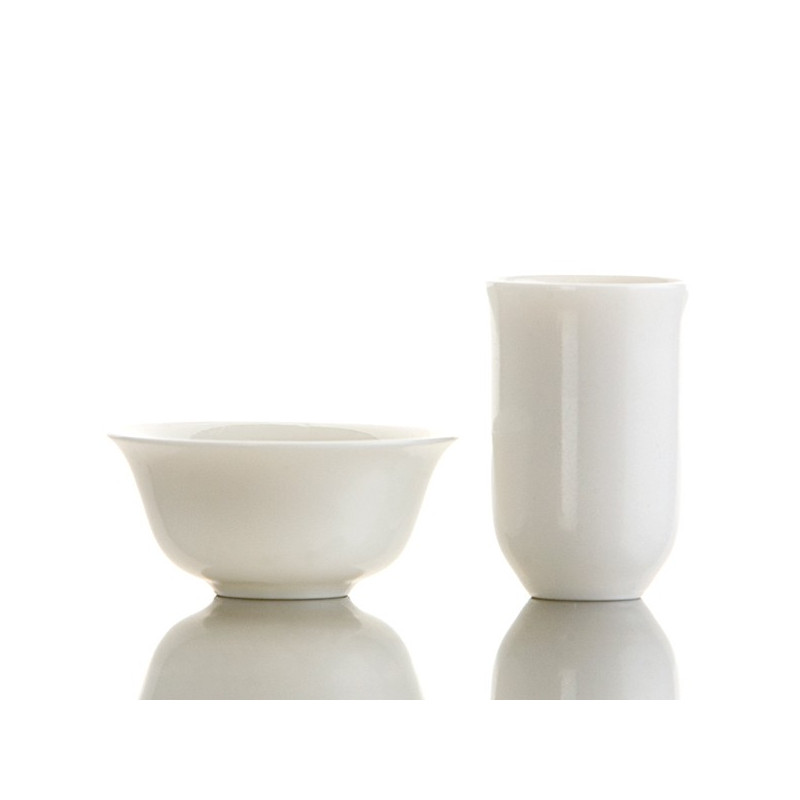 White Porcelain Pinming Teacup and a Cylinder that is used as a Fragrance Smelling Cup. The Cylinder is intended to capture the aroma and essence of the brewed Tea.