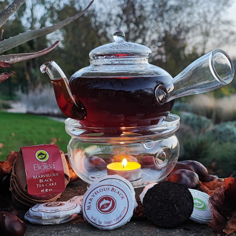 Beautiful Teapot with Burner and our deliciously intense Marvelous Black Tea combined to enjoy the long winter evenings with your always hot Tea.