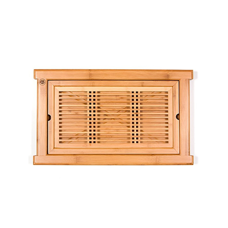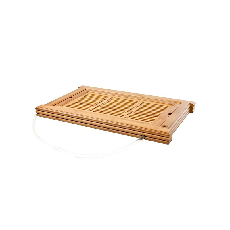 Classic Bamboo Tea Table for the Chinese Tea ceremony "Gong Fu Cha". This model requires an additional container to connect to the drainage pipe for waste water. Biotea offers the Bamboo Vase for water collection that you can find in the "Preparation Accessories" Category.